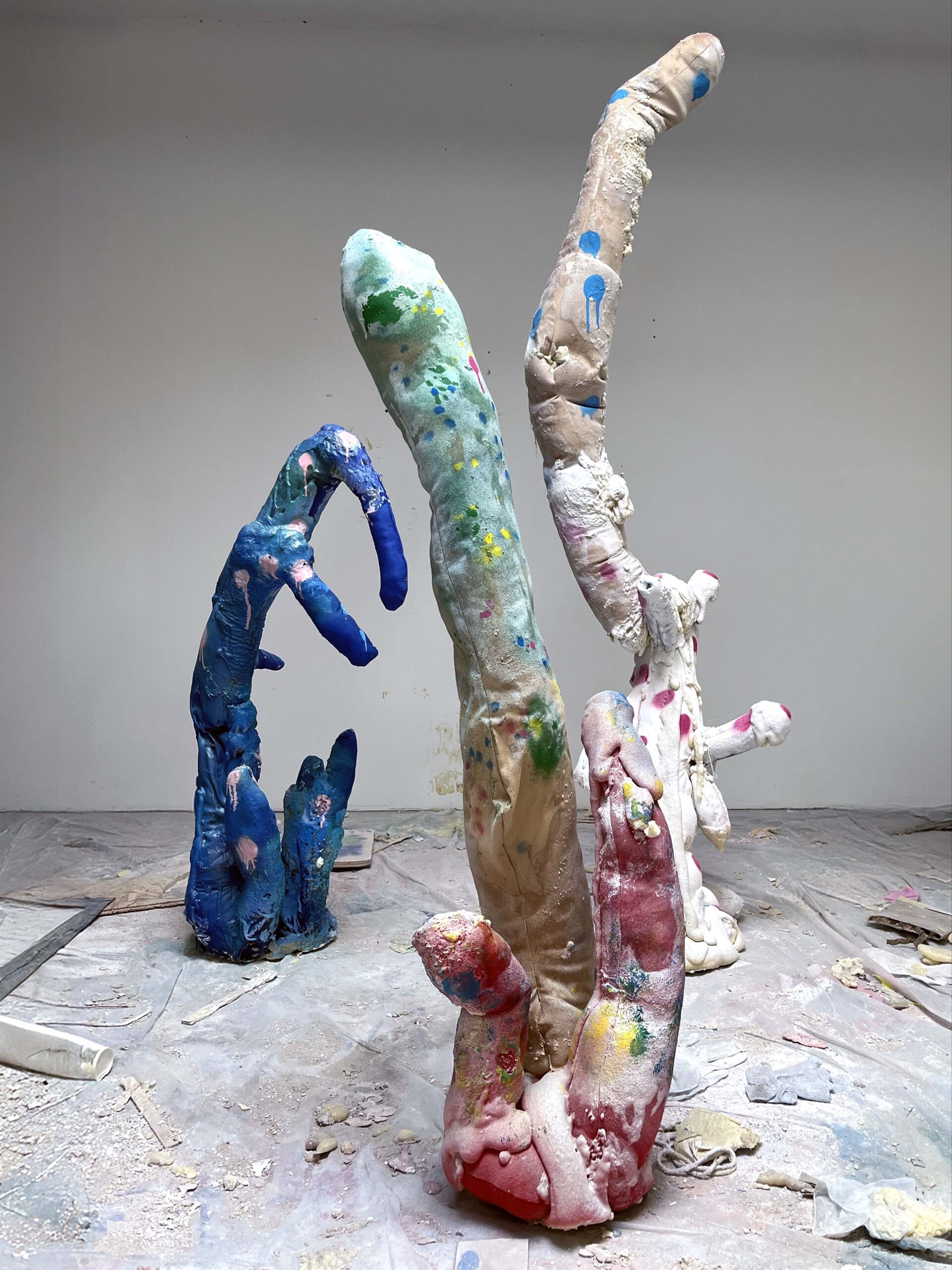 A series of sculptures: swelling to surface, piercing space, radically upward.